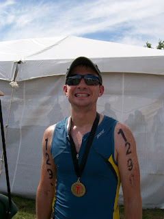 I'm pretty pleased overall, especially because my T1 and T2 errors didn't cost me my goal of a sub hour race. I suppose I lost 40 or so secs overall, but it felt like an eternity out there.